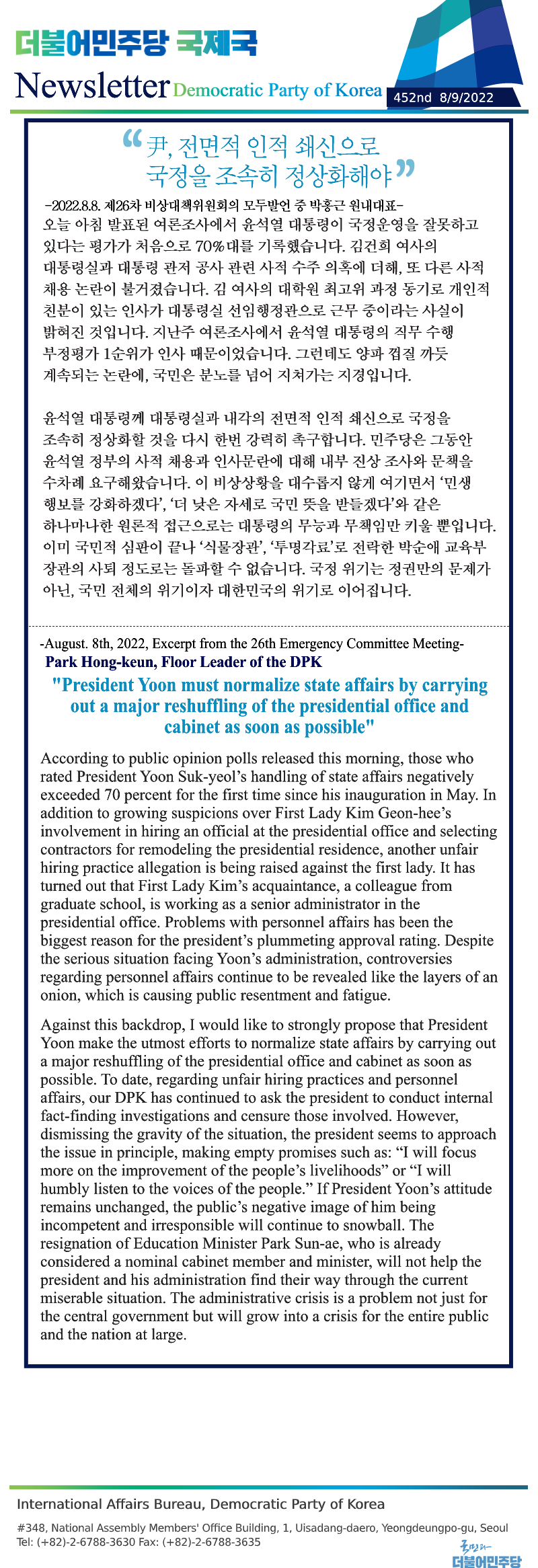 [452nd Newsletter] Excerpt from the 26th Emergency Committee Meeting