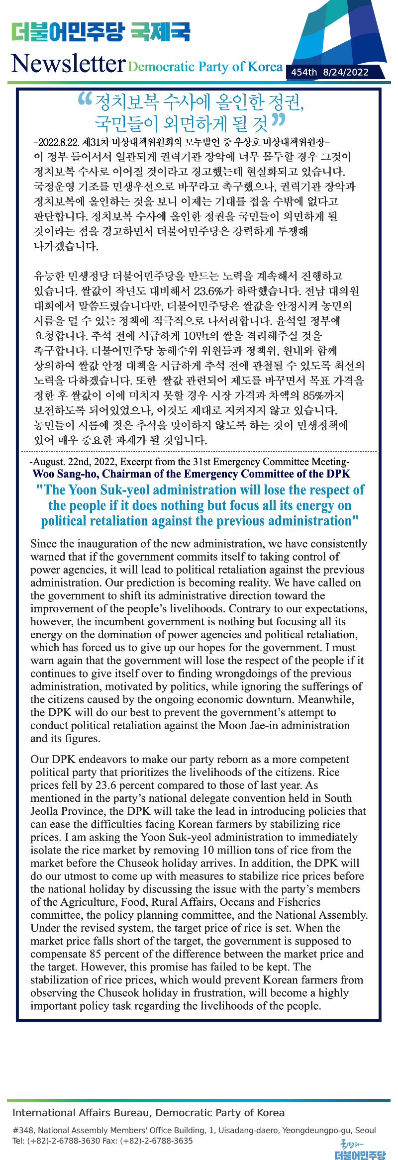 [454th Newsletter] Excerpt from the 31st Emergency Committee Meeting