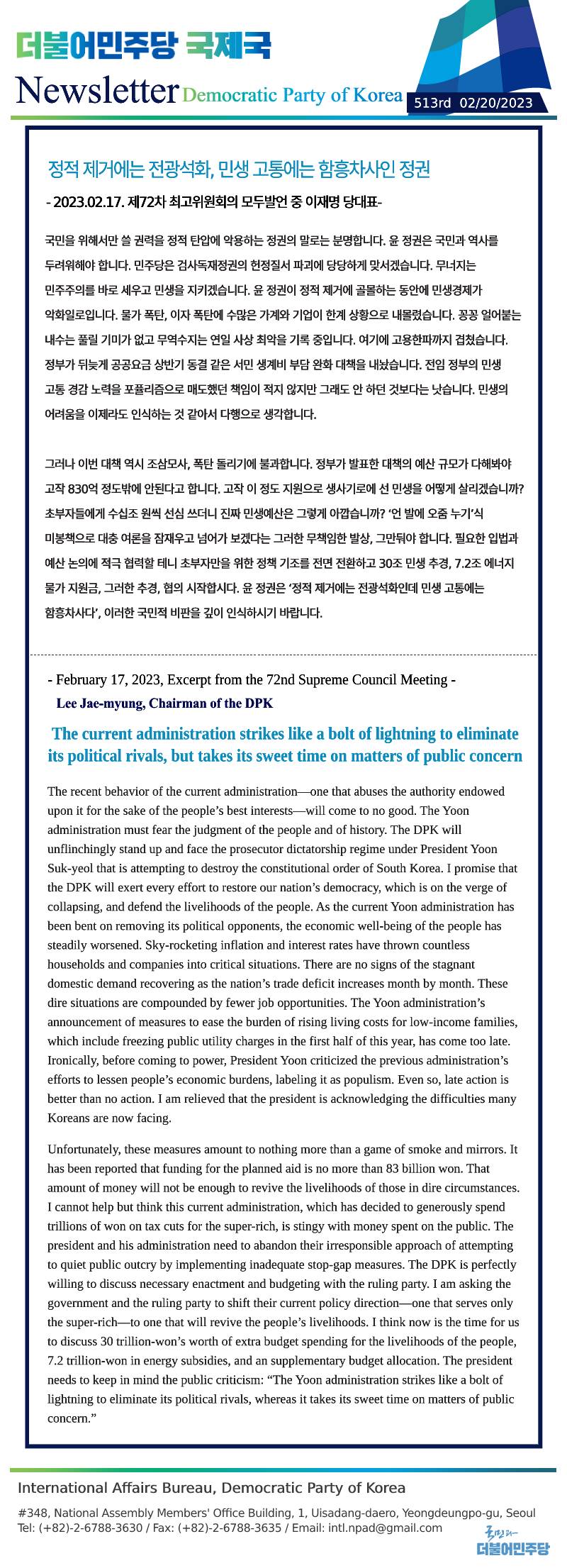 [513rd Newsletter]Excerpt from the 72nd Supreme Council Meeting