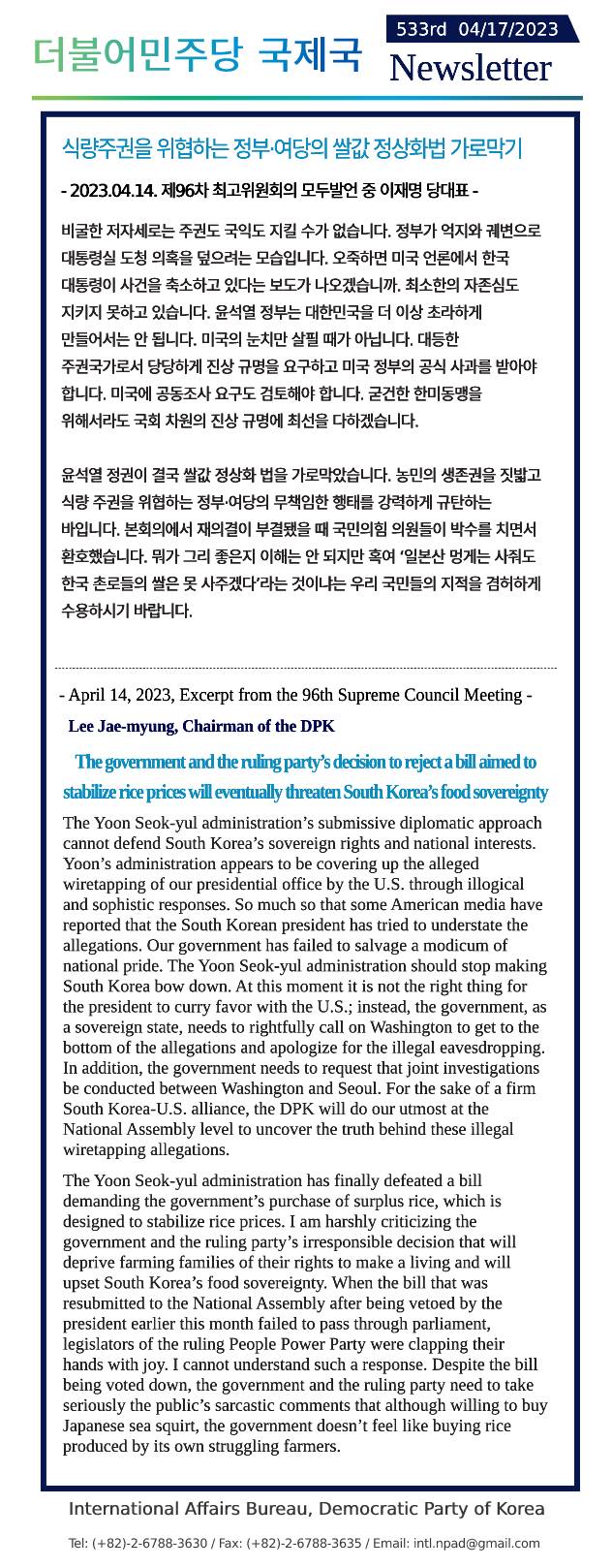 [533rd Newsletter]Excerpt from the 96th Supreme Council Meeting