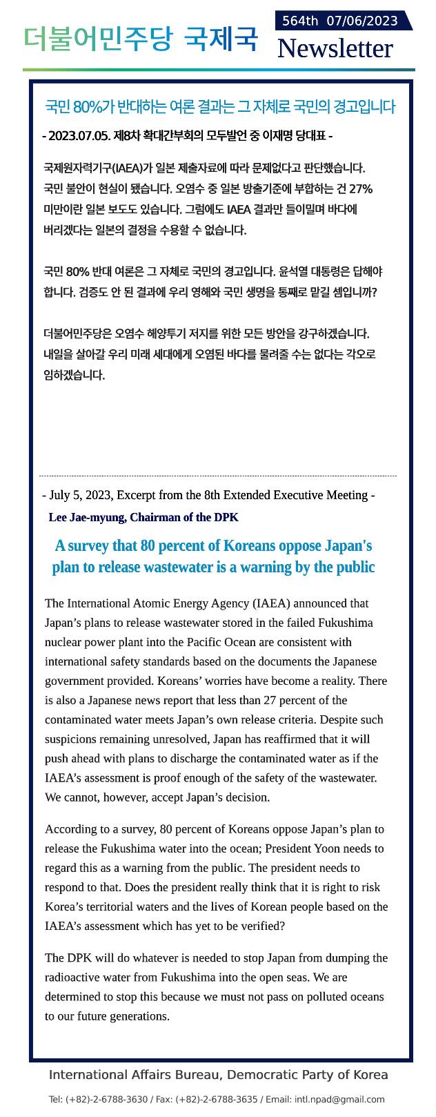 [564th Newsletter]Excerpt from the 8th Extended Executive Meeting