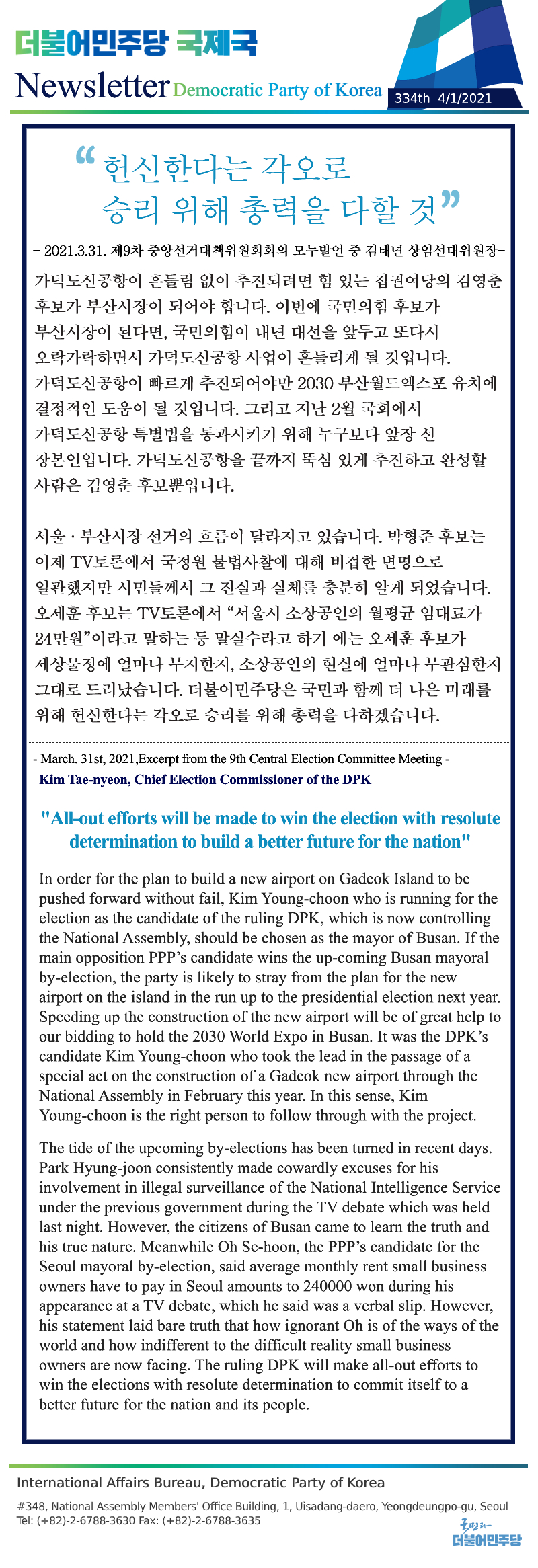 [334th Newsletter] Excerpt from the 9th Central Election Committee Meeting