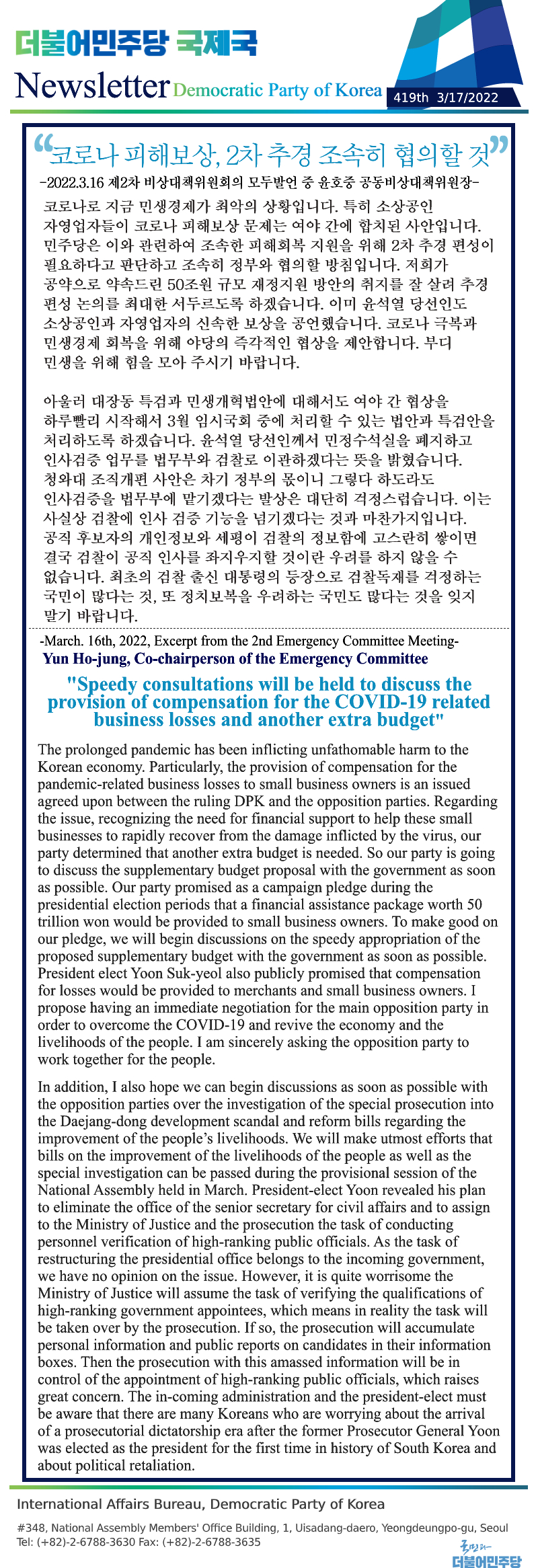 [419th Newsletter] Excerpt from the 2nd Emergency Committee Meeting