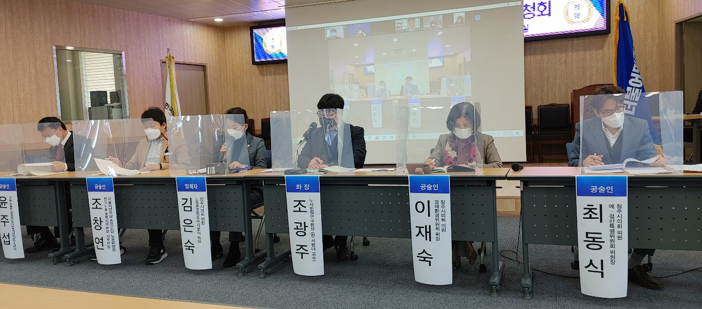 코로나19 방역지침에 따라 현장 참석자를 최소화하고 일부는 화상회의로 참석하여 열린 이날 공청회 1부 개회식에는 이장섭 충북도당위원장을 비롯해 강국모 한국노총 충북지역본부 의장, 한범덕 청주시장, 최충진 청주시의회 의장이 참석하여 격려의 말을 전했다.
