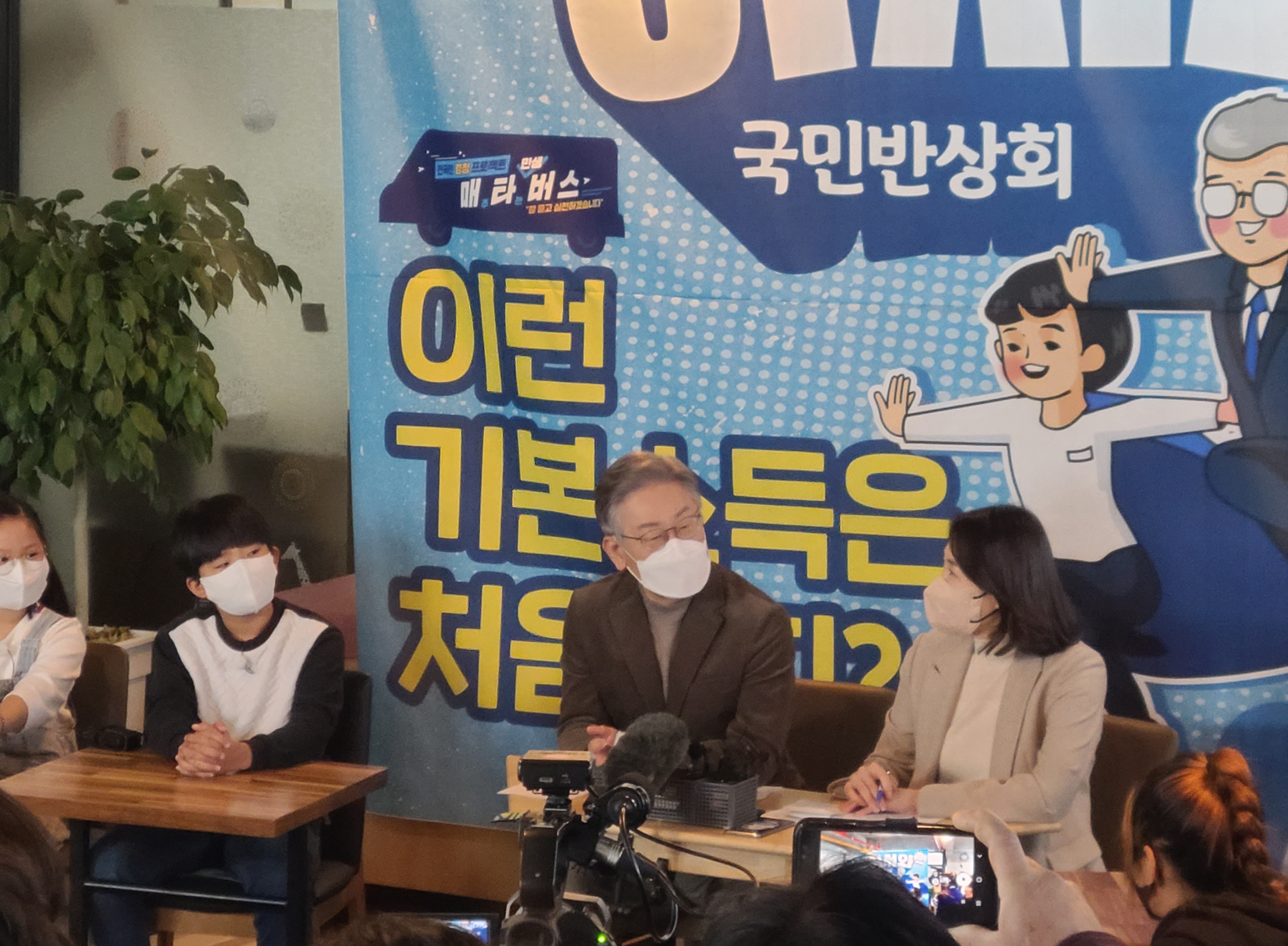 이 후보는 충북 보은에 위치한 보은마루 카페에서 판동초등학교 학생들과 함께하는 국민 반상회를 열고 기본 소득 공약의 필요성을 재차 강조했다.