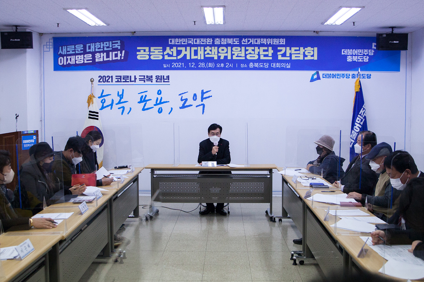 더불어민주당 충북도당(위원장 : 이장섭 국회의원)은 ‘대한민국대전환 제20대 대통령선거 충북 선거대책위원회 공동선거대책위원장단 간담회’를 28일 오후 2시 도당 대회의실에서 열었다.