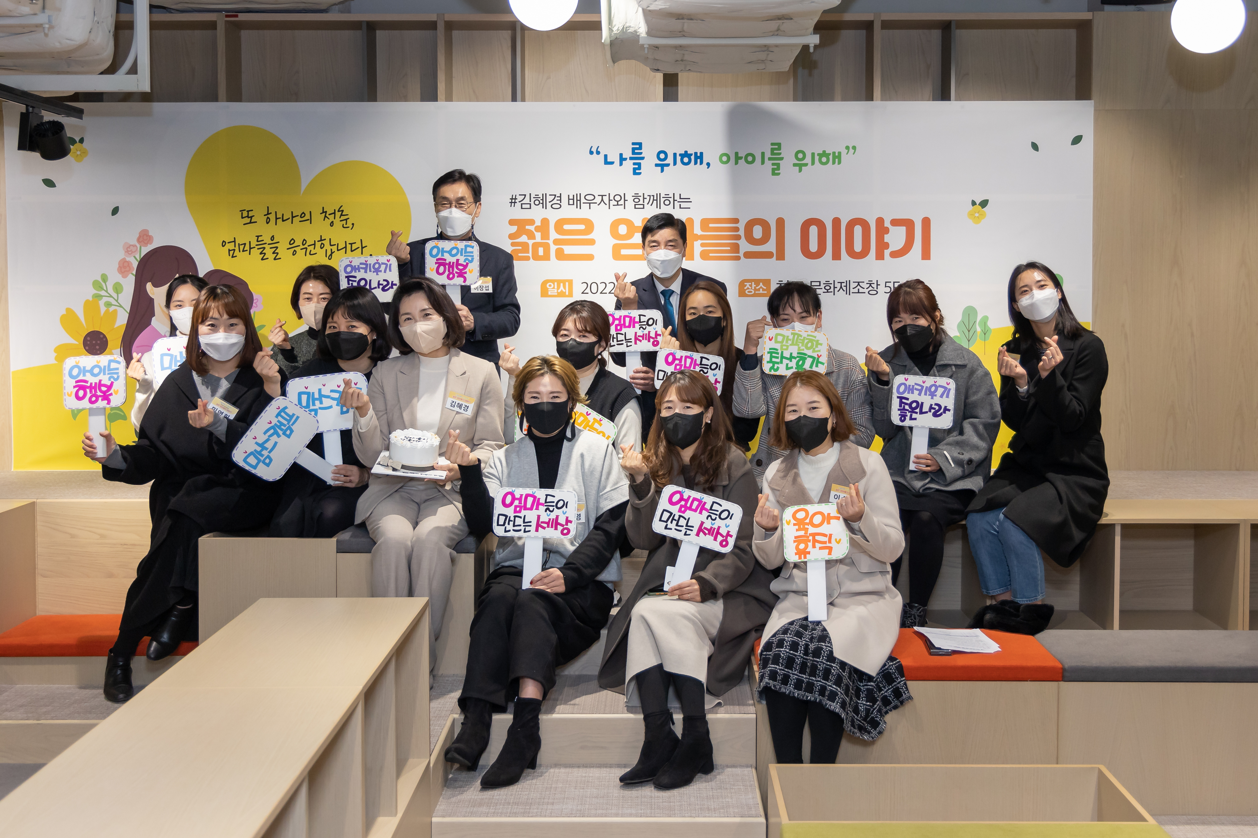 김혜경 씨는 오후 2시 청주 문화제조창 내 키즈카페에서 ‘맘스캠프’의 젊은 엄마들과 간담회를 진행했다. 맘스캠프는 출산 및 육아로 인한 경력단절로 사회복귀에 현실적 어려움을 겪고 있는 엄마들의 일자리와 부업 창출을 위해 함께 노력하는 충북 대표 맘카페다.