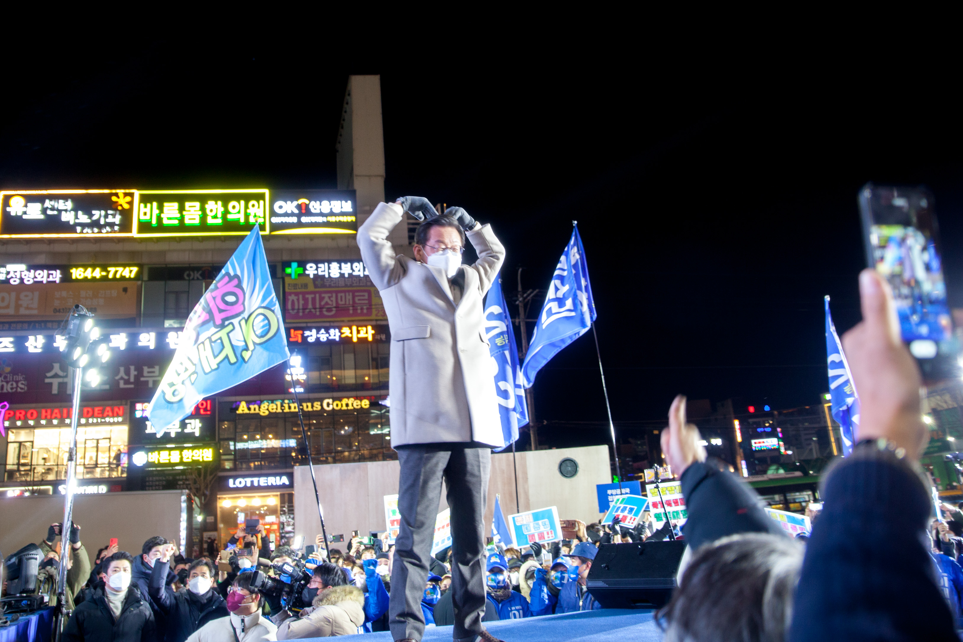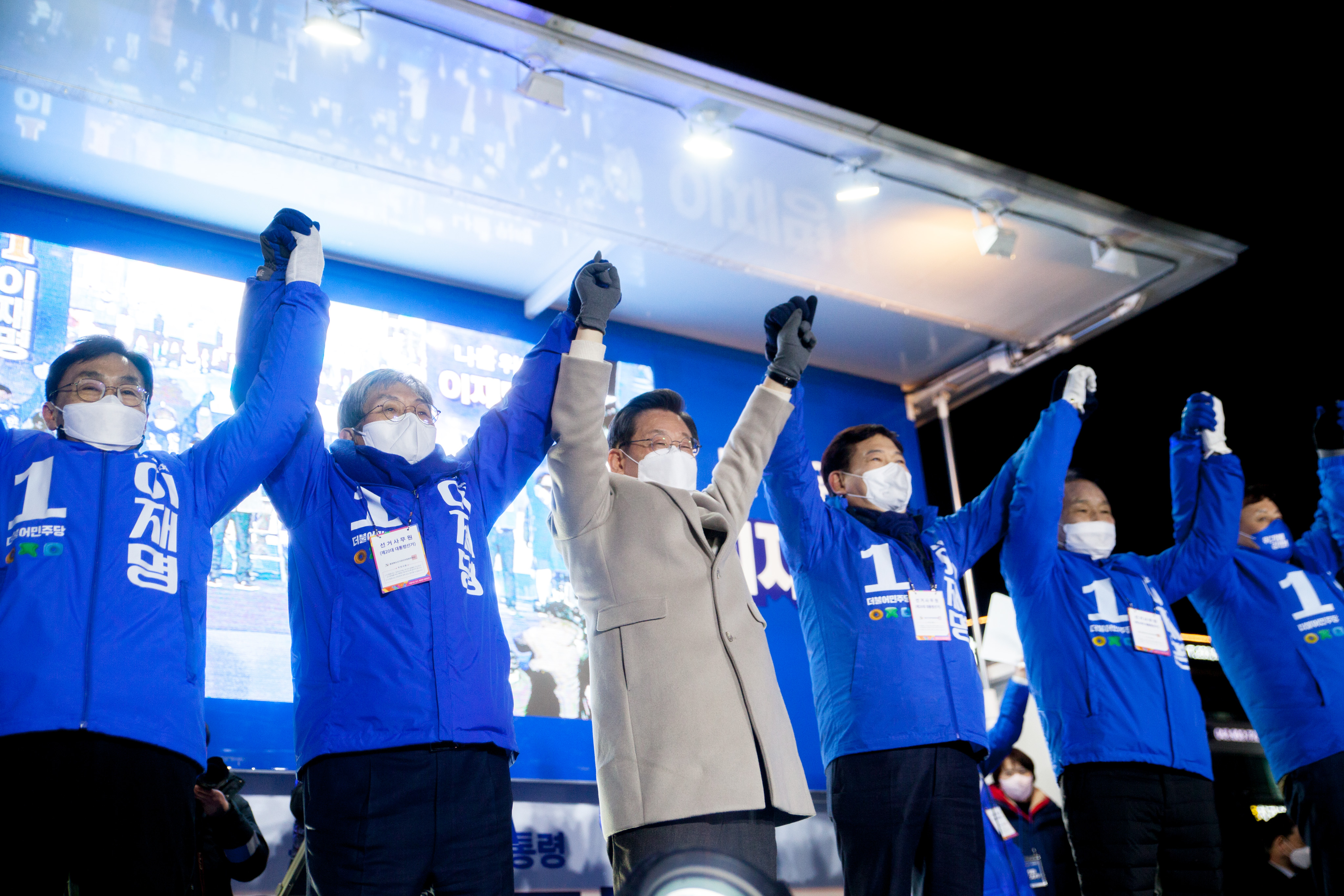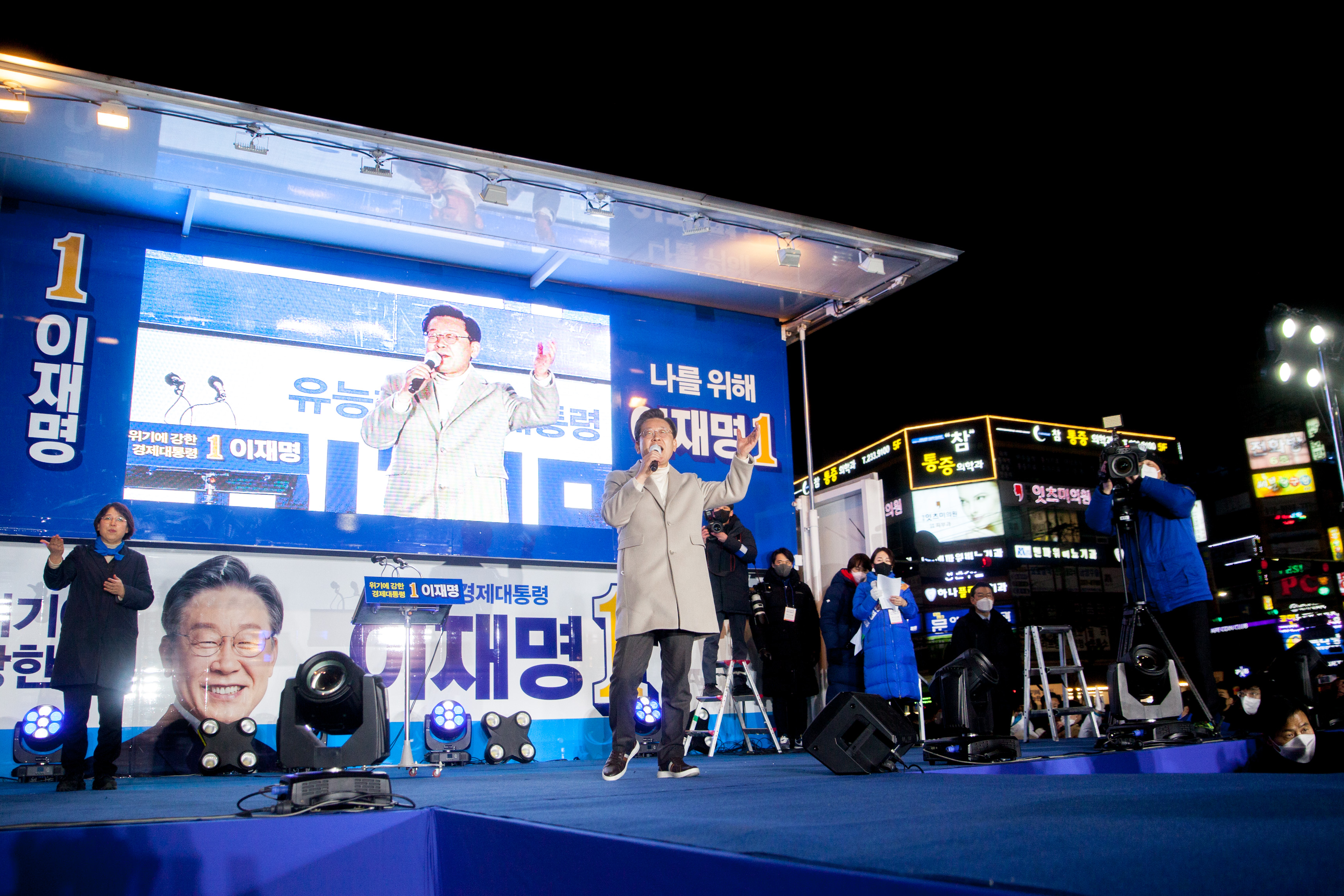이재명 후보는 “3월 9일의 선택은 3월 10일의 두 가지 문 중에 하나를 결정할 것”이라며 “이재명을 선택하는 것이 아니라 여러분의 미래, 대한민국의 운명을 선택해 달라”고 호소했다.