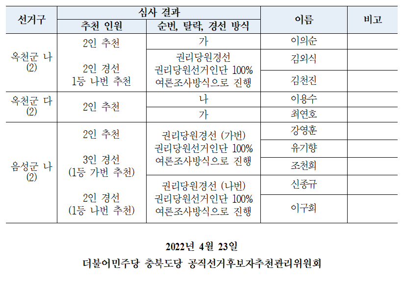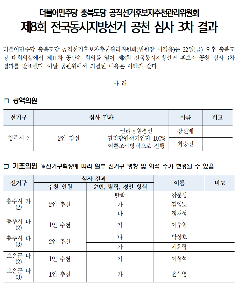 [보도자료] 제8회 전국동시지방선거 공천 심사 3차 결과