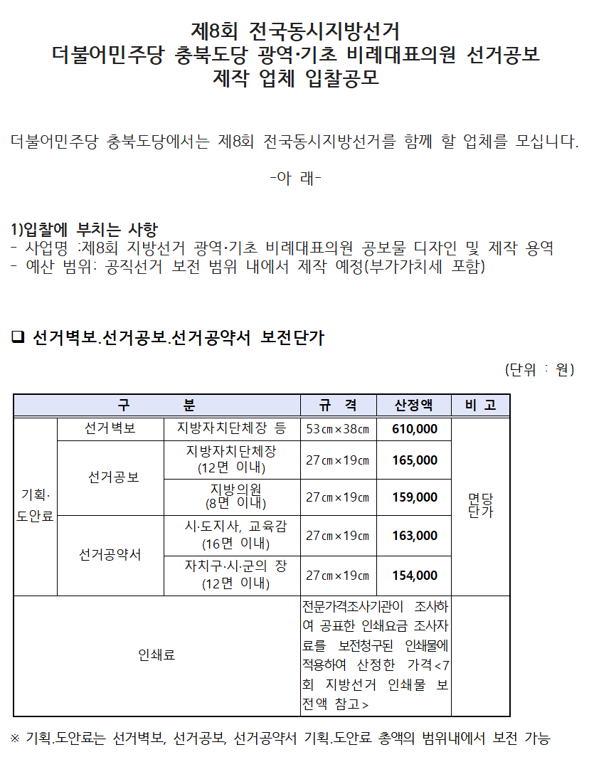 광역.기초 비례대표의원 선거공보 제작 업체 입찰공모