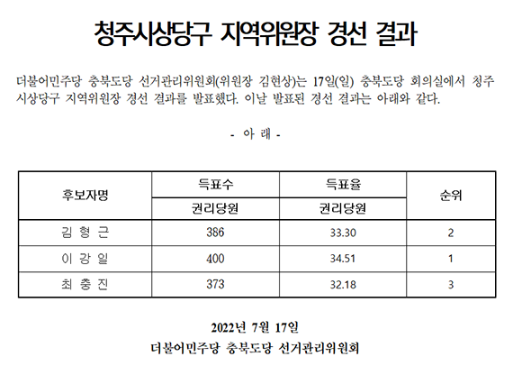 청주시상당구 지역위원장 경선 자발투표 전화번호 안내