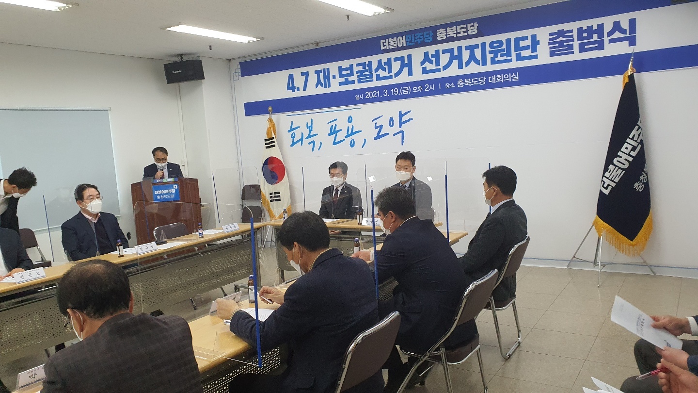 더불어민주당 충북도당 ‘4.7재보궐선거 선거지원단(이하 선거지원단)’이 19일 출범식을 갖고 본격적인 활동을 시작했다.