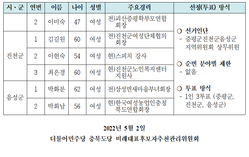 [보도자료] 제8회 전국동시지방선거 비례후보자 추천 심사 결과