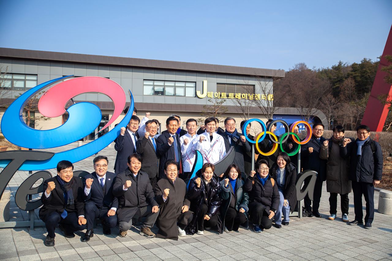웨이트트레이닝장과 소프트트랙 훈련장에서는 동계올림픽은 물론 하계아시안게임을 준비 중인 선수들을 만나 노고를 치하하고 격려의 메시지를 전했다.
